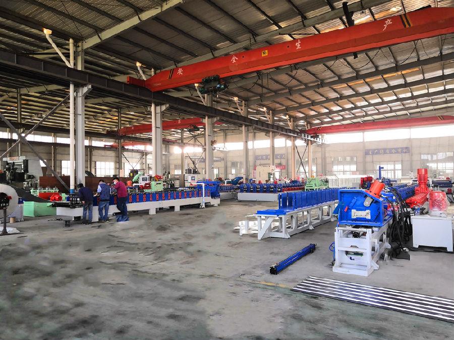 產(chǎn)線占地約50平方米,設(shè)備組成主要包括:放料裝置、校平送料裝置、高精密伺服送料液壓沖切裝置、高精度冷彎成型主機(jī)、定尺切裝置電氣和液壓控制系統(tǒng)等部件組成。